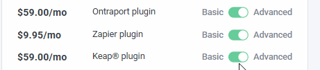 Note: Upgrading marketing plugins can be found from your gravatar under marketing plugins, if you've connected a marketing plugin in trial subscription and only want a Basic select (as shown below) when choosing your subscription at Billing link, the Advanced Marketing can be add or removed from your Subscription at any time, for a credit applied to next month's subscription payment. (Examples)