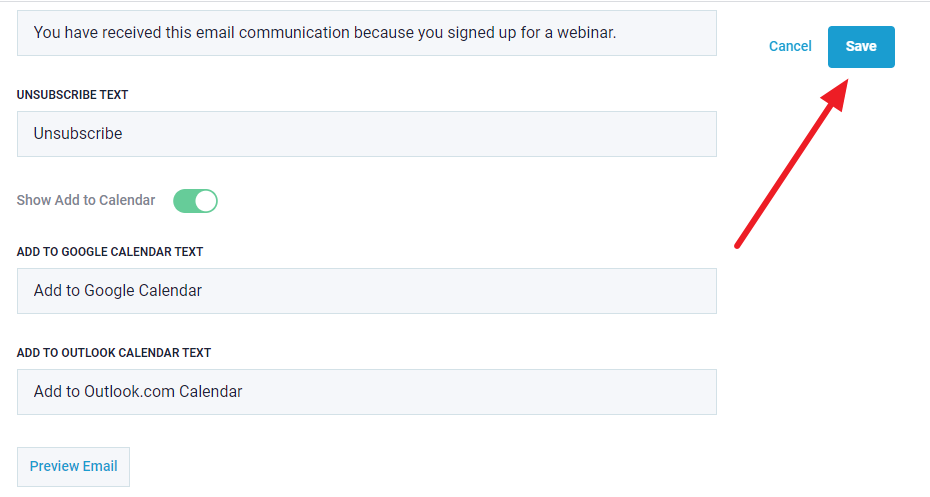 You can go to any of your email reminders, click on Customize, and then scroll down to find this option
