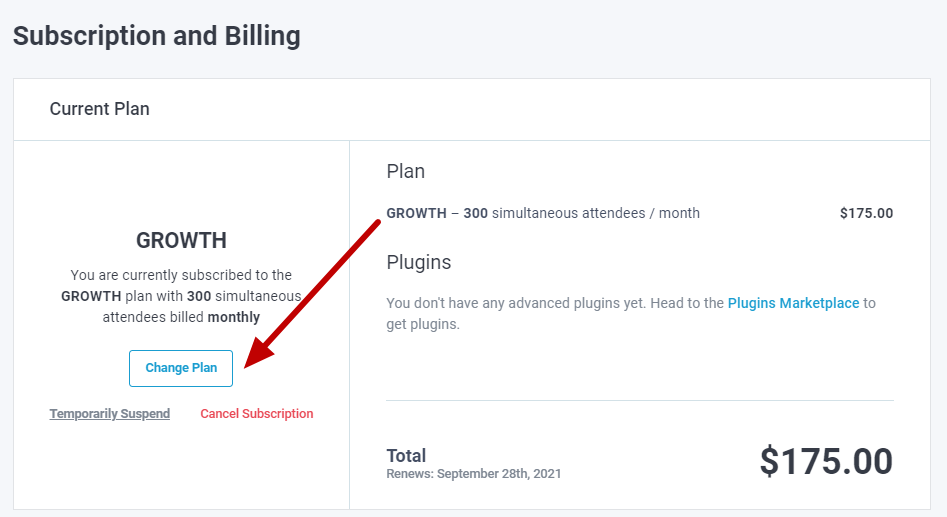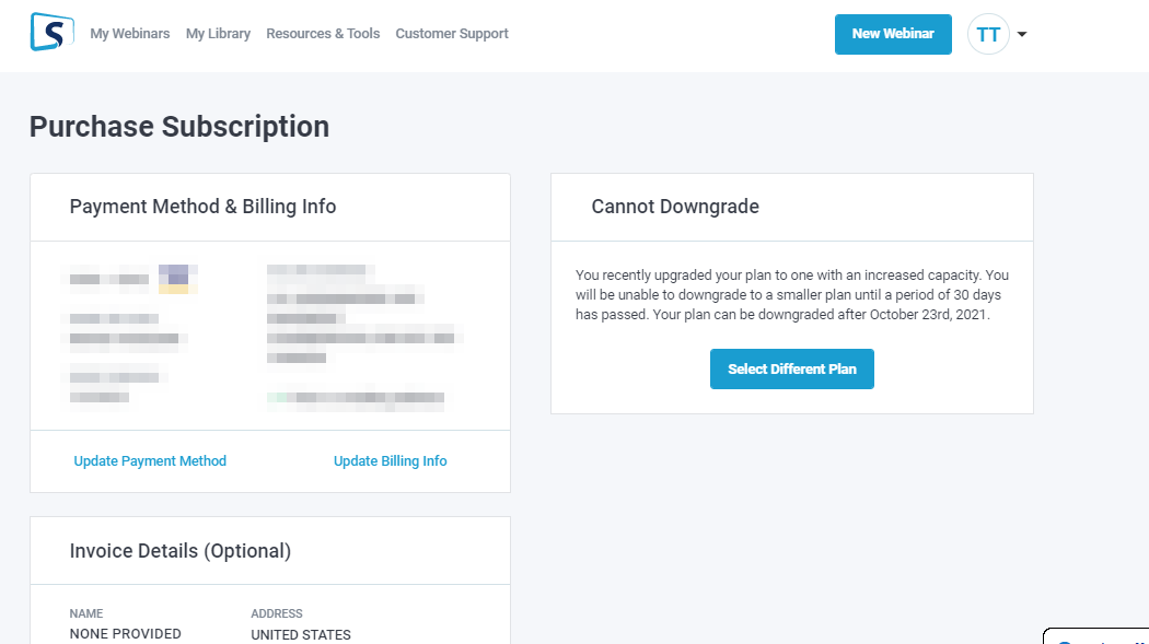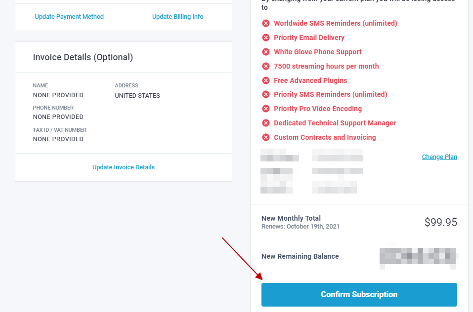 Please note, usually, all upgrades are for a minimum of 30 days. If you try to downgrade before that period, you will see a message like this