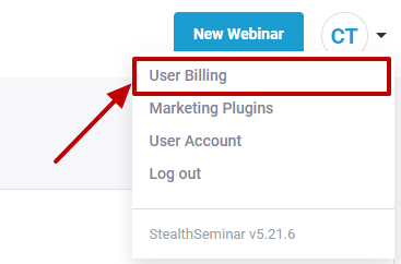 2. In the top right corner, click on the arrow next to your initials. Click the USER BILLING