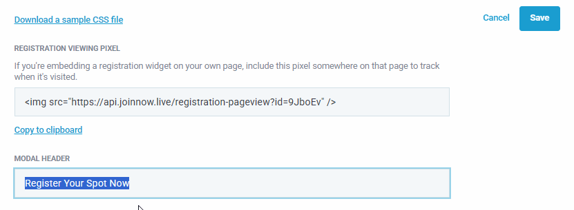 Our Registration Embed Widget has place to update text items contained within it under Miscellaneous section as shown below.