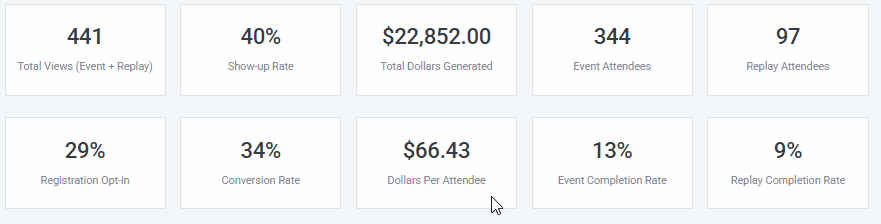 Replay Attendees: Number of unique attendees who attended your replays. This does not include Event Attendees.