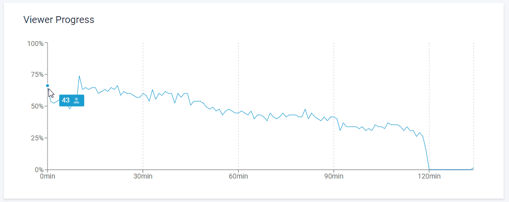 To find drop offs, you can go to your stats and then go to the section where it says, "Viewer Progress". "Viewer Progress" shows you a graph of what percentage of users that logged in were viewing the webinar at each progress marker. We call these minute marker. You can take your mouse on the progress marker and see the minute marker like this