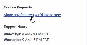 Click on "Feature Requests" to send a feature request, you will be able to see all the existing feedback. If you think yours is unique, you can create a new post on that page and submit your feedback. Otherwise, you can just up-vote an existing feature/feedback by clicking on the rating board.