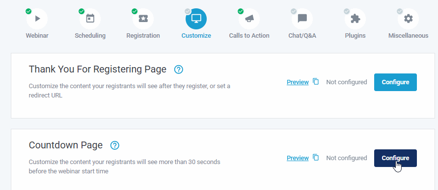 To disable or enable calendar for either page, click on "Configure" at the associated page in Customize section (as shown below)