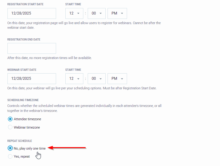 How do I run my webinar only once?