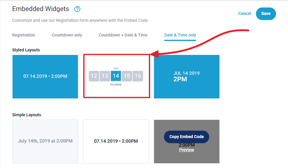 Click on "Copy Embed Code" for the layout that you like.