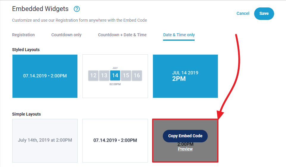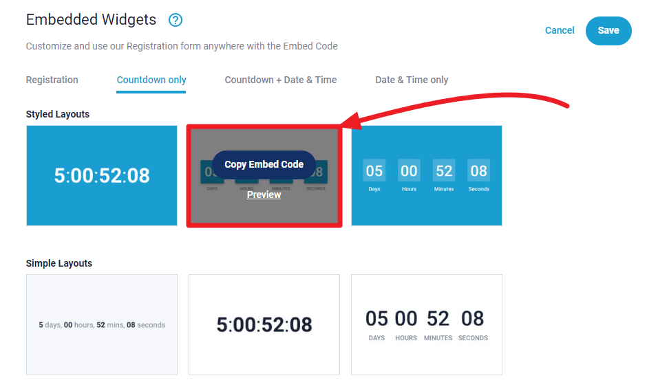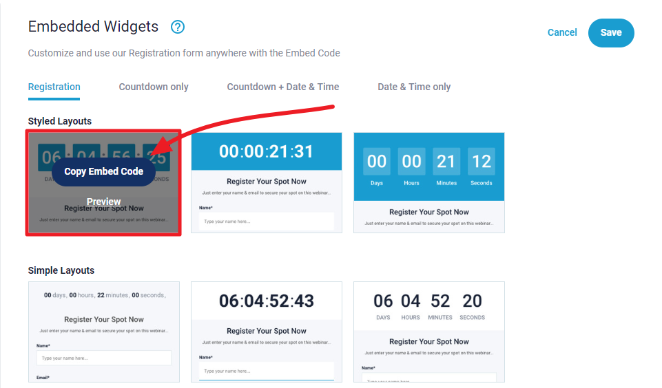 Go back to your Stealth Seminar dashboard and grab the countdown code that you like. You can choose any timer code that you want.