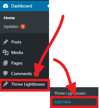 First, go to your wordpress site. Go to your admin "Dashboard" > "Thrive Lightboxes" > "Add New" (or if you have already created a lightbox and want to edit existing one, you can do so too).