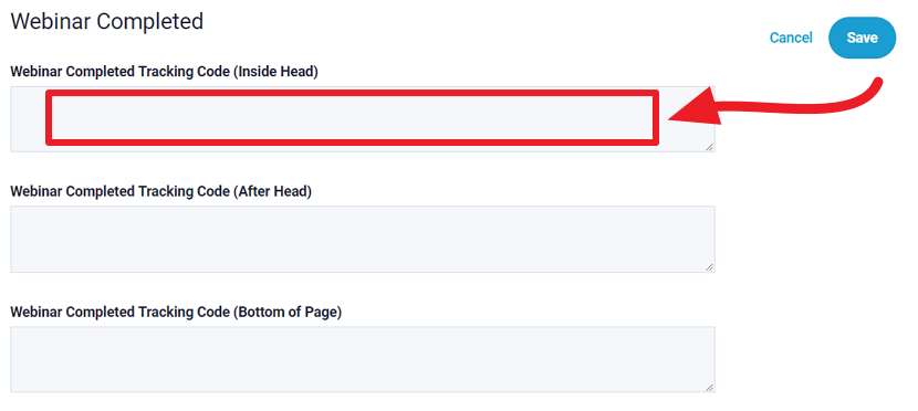 To add pixel for your completion page, go to your event editor, then to "Miscellaneous", then click on "Configure" for "Tracking Code Setup".