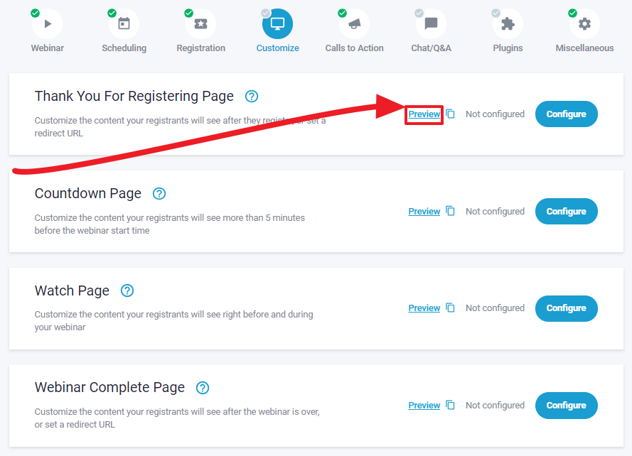 To see our thank you page preview, go to your event editor, then click on "Customize".