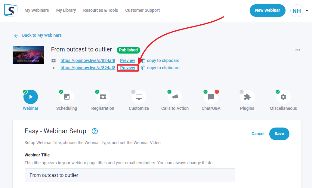 For hybrid and live events, you have to add your youtube live url to preview the webinars.