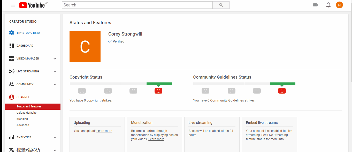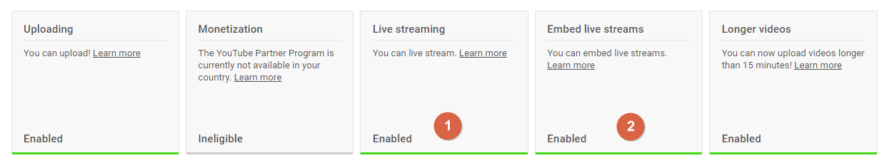 When you are done, wait for your approval for "Live Streaming" & "Google Adsense".
