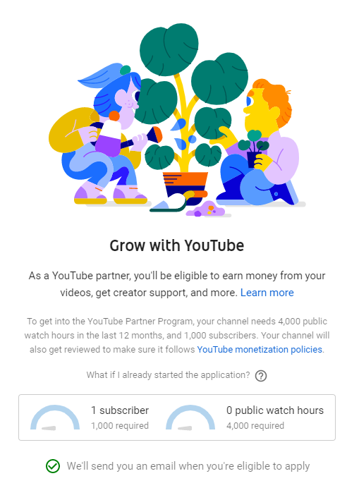 Then enable "Monetization". You have to go through adding your website, your address, and might need to set a birthday as well if you are using a "Google Suite" account.