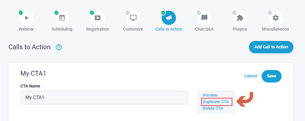 After you create your call to action and save it, you can click on configure and hit the duplicate button here