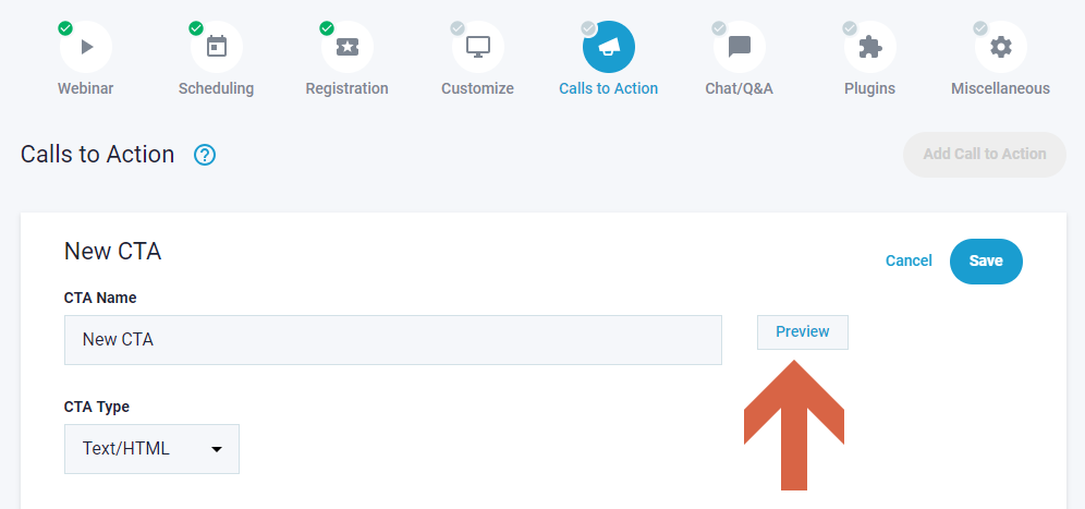 How do I preview my call to action? You can use the preview link beside "CTA Name" in your call to action