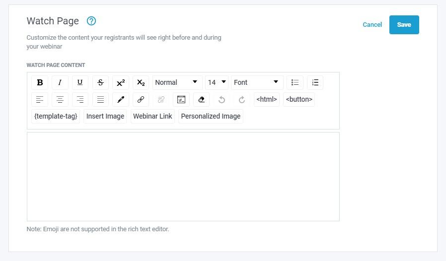 This will be seen during the preroll video (with less than 5 minutes until webinar start time) and during your webinar.