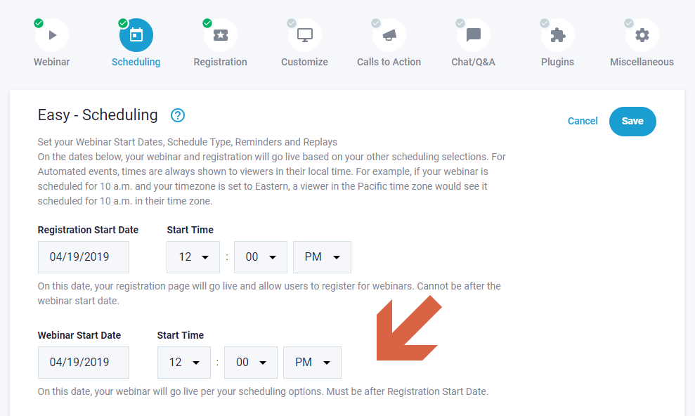 For once event, this webinar start date also means that's the only time your webinar will run.