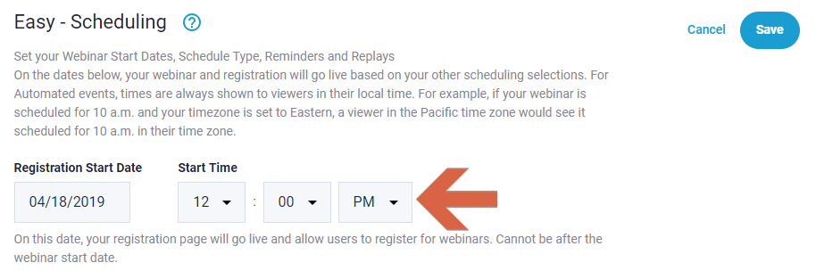 Your registration page will go live on that date and allow users to register for webinars. Registration Date has to start before webinar date.
