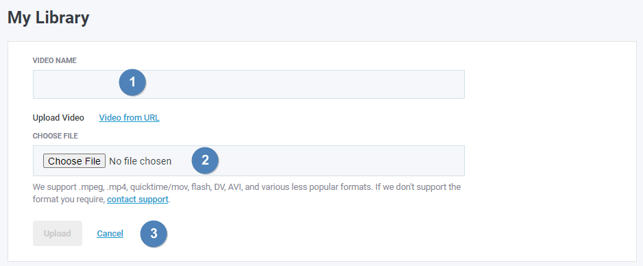 2. Give your file a Name (it can be any name, your webinar attendees will not see this), click on Choose File, select the file from your computer and then hit Upload