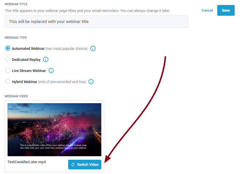 6. From Webinars > Easy - Webinar Setup > Webinar Video > Click on Switch Video