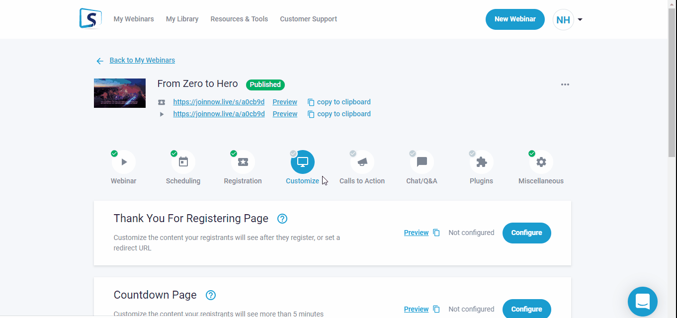 You can customize the look and feel of the Built in Registration pages or the rest of the webinar experience, add your own CSS files.