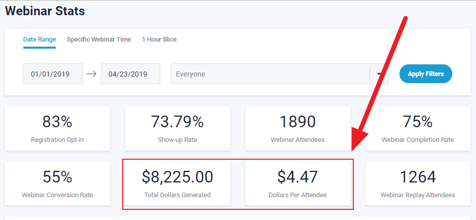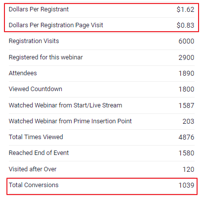 You will also be able to track dollars per attendee, dollars per registrants and dollars per registration visit as well.