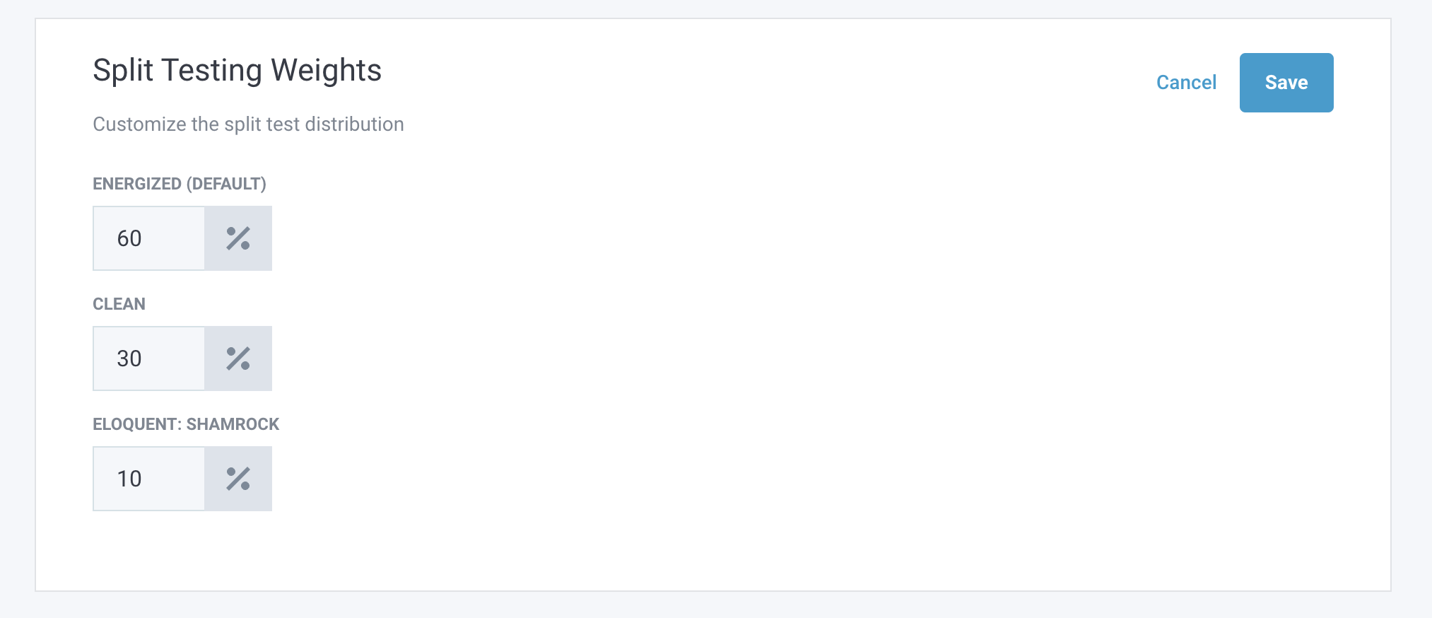 3. Go to Split Testing Weights and set the weights for your variations and hit Save. And now you have set up the weights for your split tests!