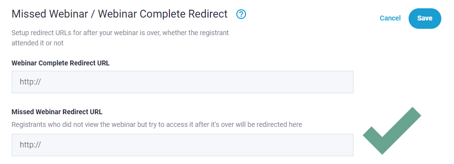 If you want people who missed the webinar to be redirected to another page on your website, you can put that here.