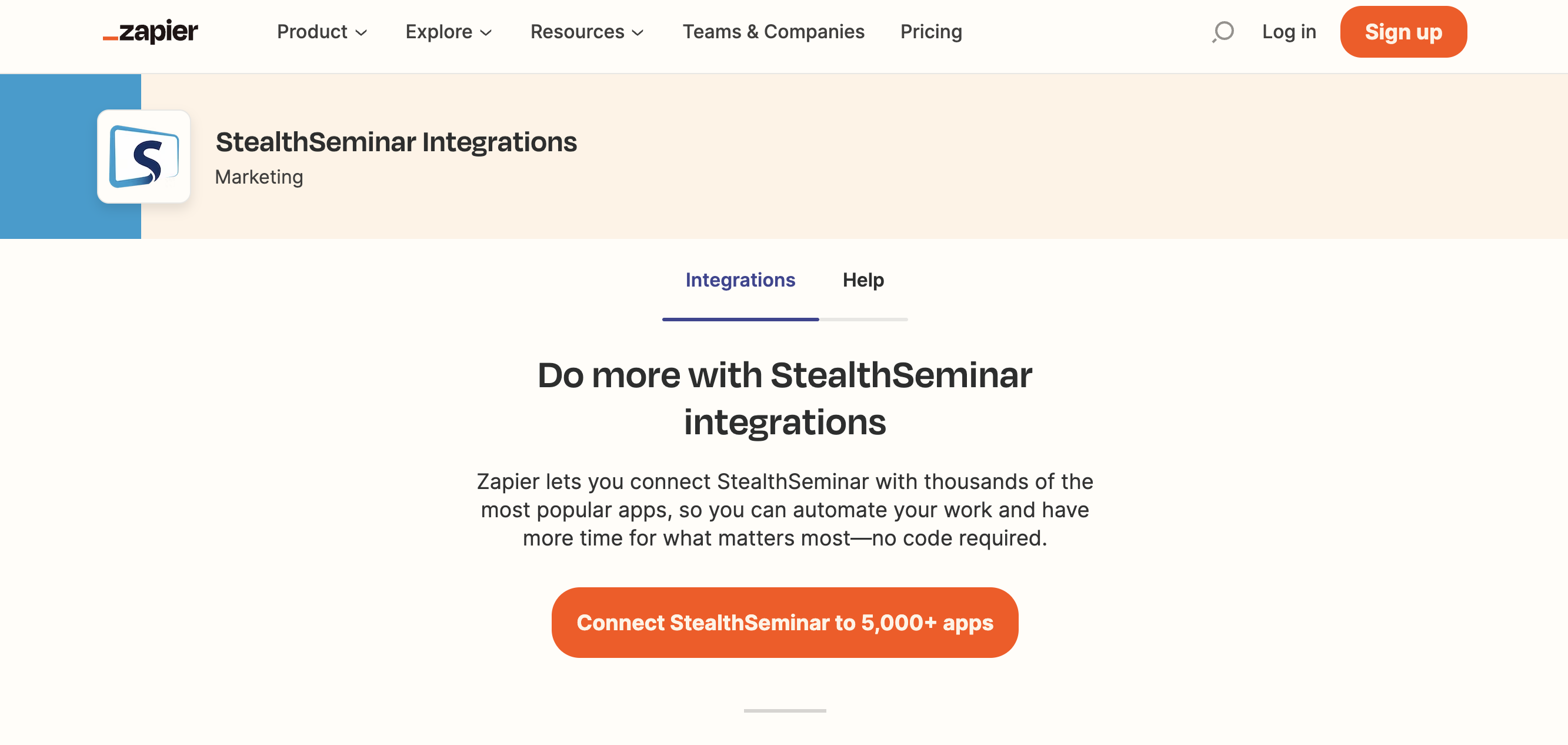 Or you can just go here, click on Connect StealthSeminar to 5000+ apps, and then in the next step (once you are logged in), add HighLevel as your integration