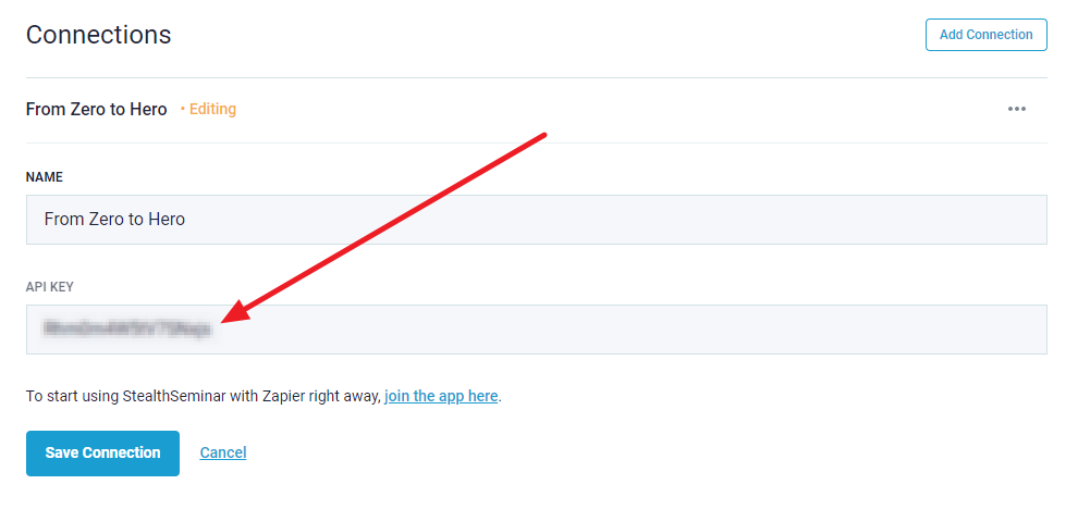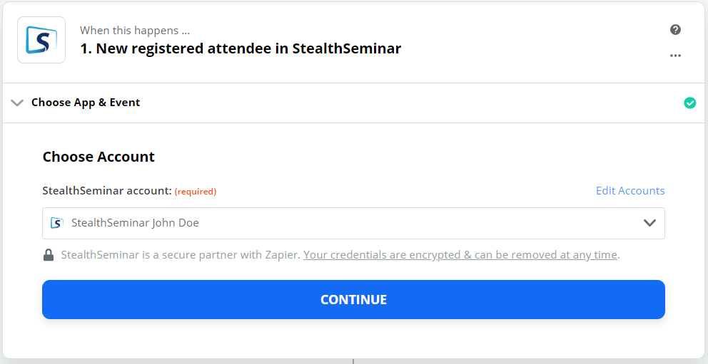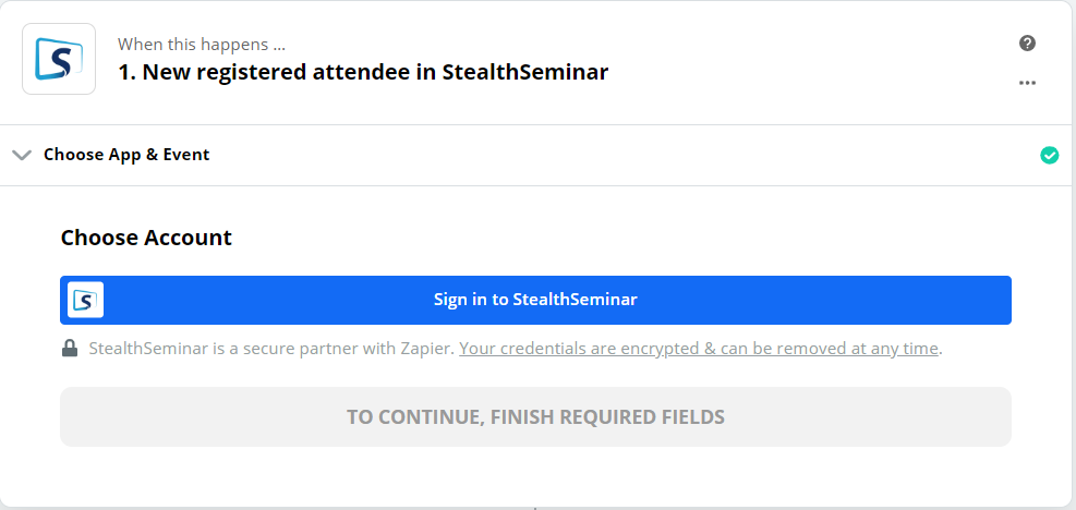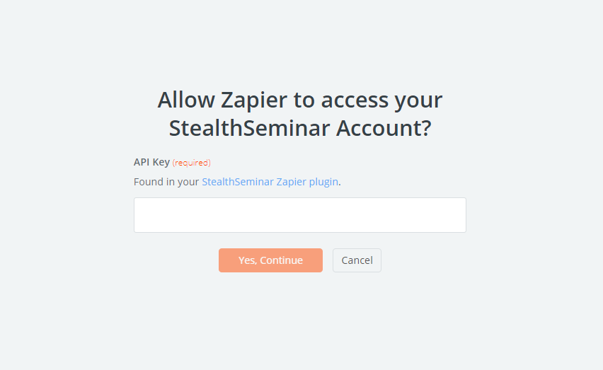 When you start creating a StealthSeminar Zap, you will be asked to connect your StealthSeminar account.