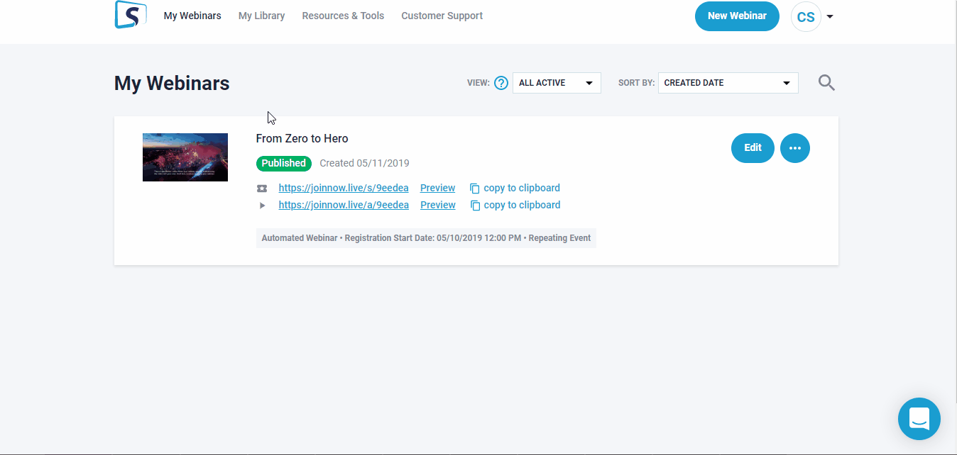 grab your webinar link from your account on our end.