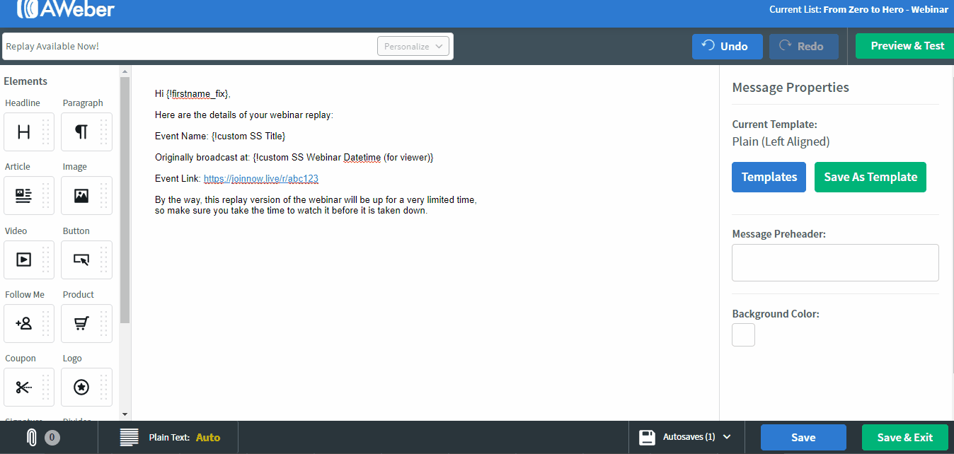 Then paste this link in your AWeber email and follow this