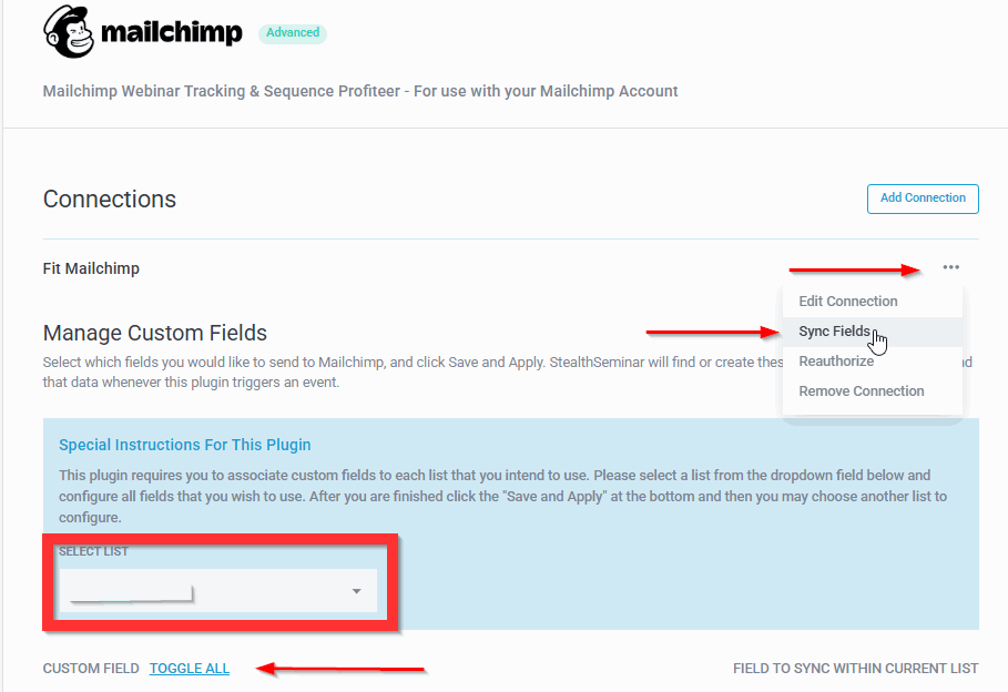Connection & Links for standard Mailchimp