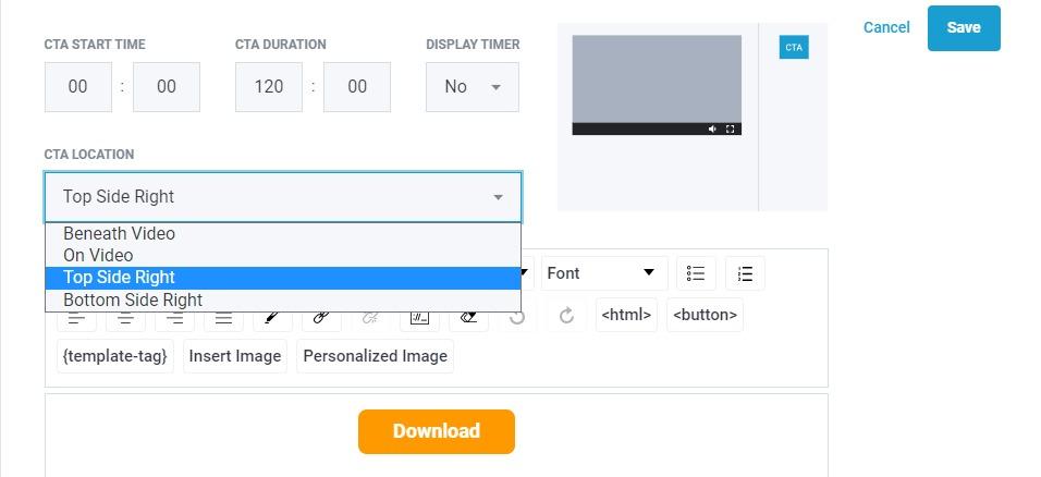 Bottom Side Right: Call to action will appear on the bottom side right of the video on desktop and for portrait mode on mobile, but on the video for landscape mode